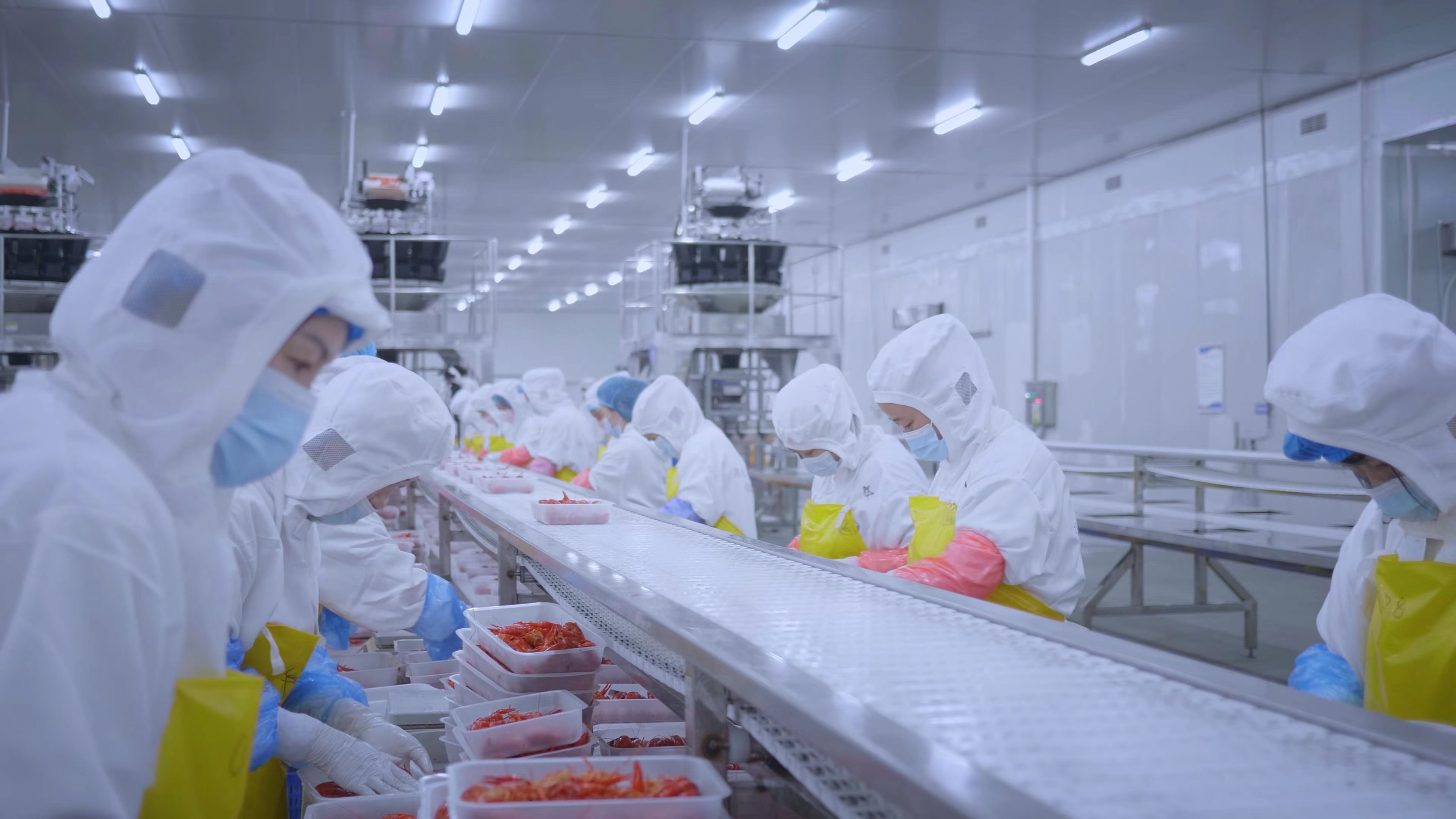 旗下湖北小龙虾集团调味虾生产线